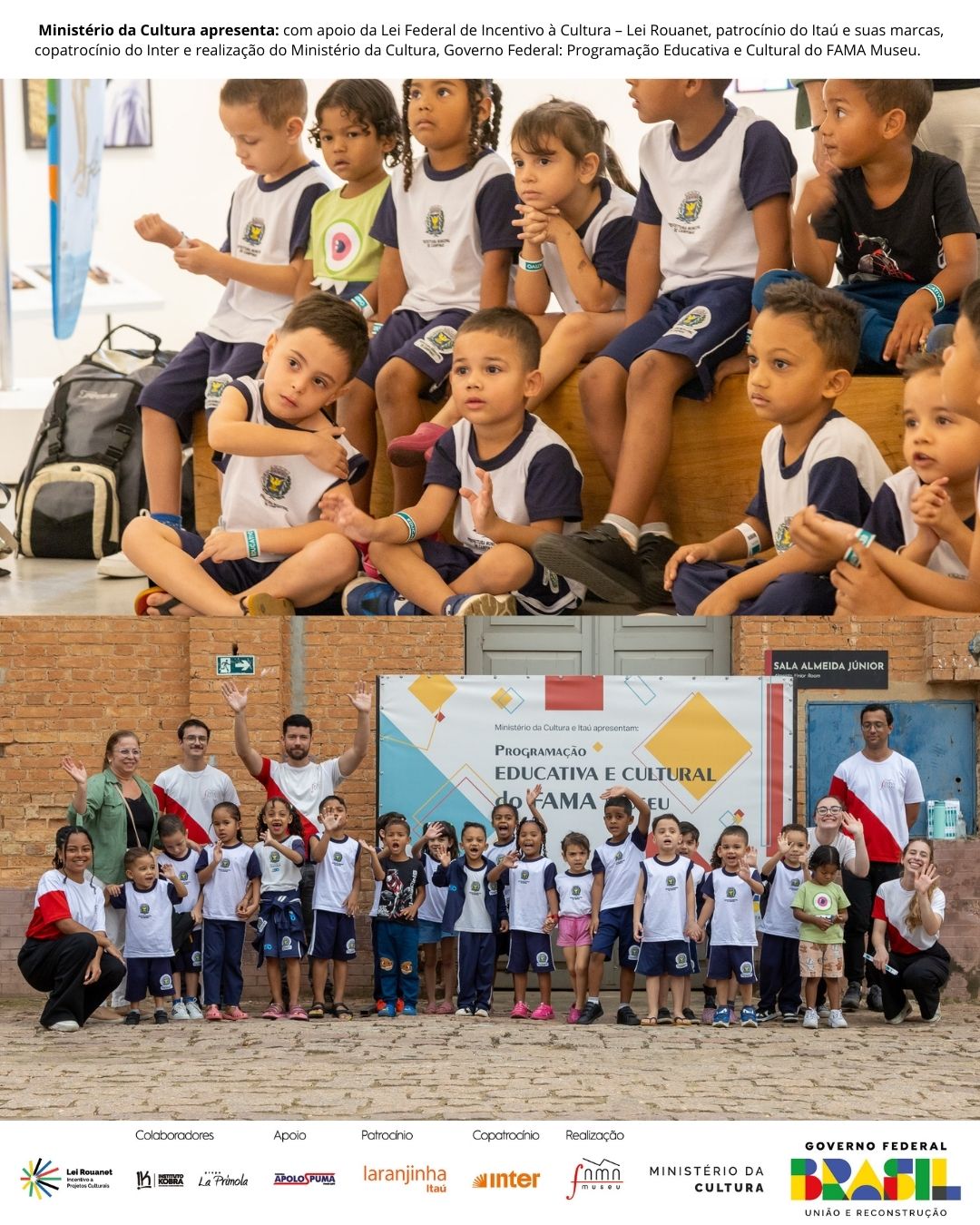 No dia 06 de Junho, o FAMA Museu recebeu dois grupos escolares para ações que integram a Programação Educativa e Cultural do FAMA Museu, viabilizada pela Lei de Incentivo à Cultura – Lei Rouanet, com patrocínio do Itaú, copatrocínio Inter e realização do Ministério da Cultura.