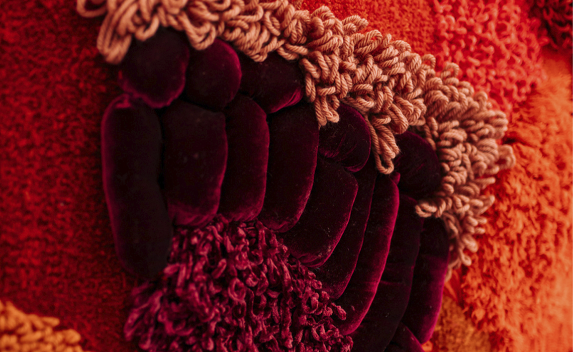 Exposição individual apresenta obras recentes e inéditas da artista mineira que desenvolve sua produção poética concentrada na tapeçaria contemporânea.