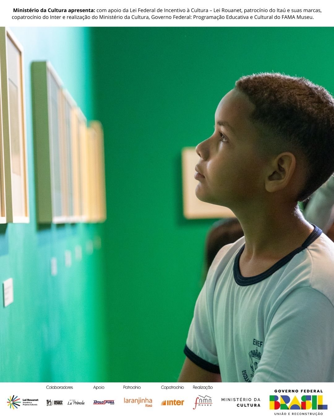 Ministério da Cultura apresenta: Programação Educativa e Cultural do FAMA Museu Realização do Ministério da Cultura – Governo Federal, com apoio da Lei Federal de Incentivo à Cultura (Lei Rouanet), patrocínio do Itaú Unibanco e suas marcas e copatrocínio do Inter.
