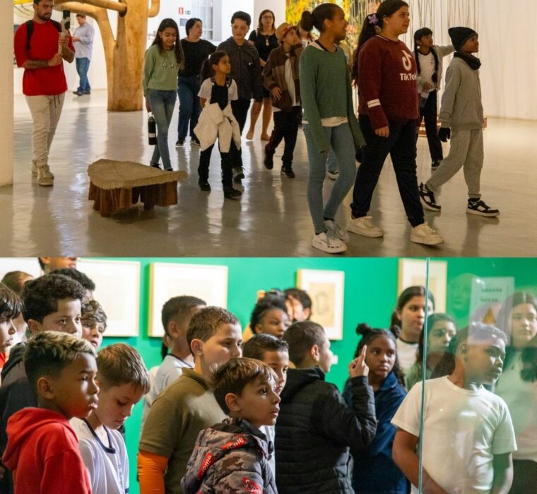 os grupos percorreram as salas Almeida Júnior, Tunga e Galpão do Urubu, onde desenvolveram atividades como o Jogo das Emoções, Interpretação e Adivinhação Artística, Oficina de Arte com Carvão e a Oficina de Produção e Fruição Artística com giz a óleo. Cada dinâmica proporcionou um mergulho no fazer artístico, estimulando observação, imaginação, criatividade e expressão pessoal.