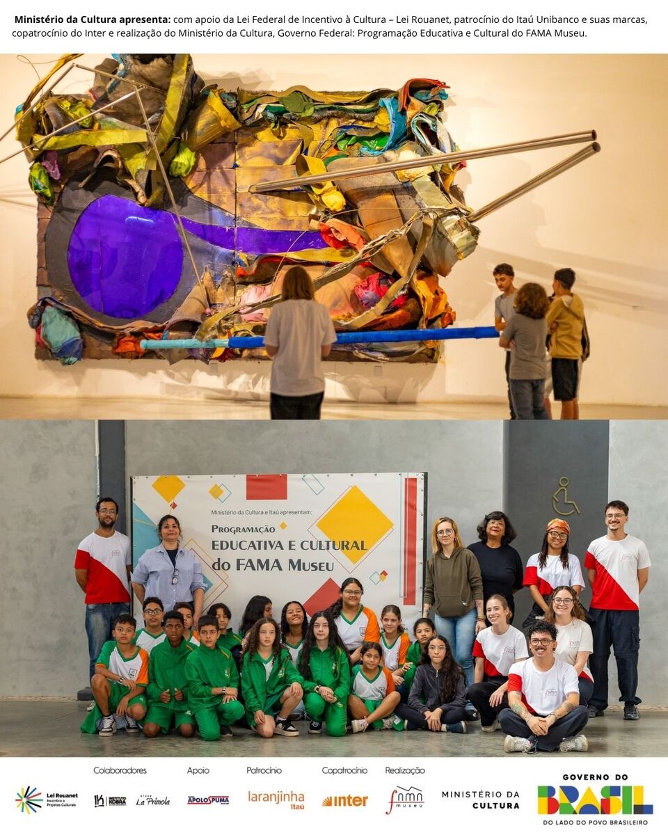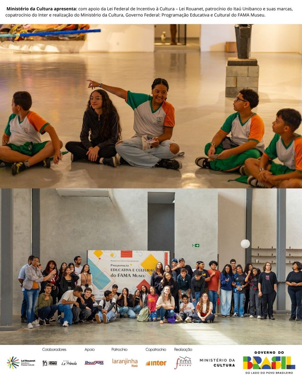 Ministério da Cultura apresenta: Programação Educativa e Cultural do FAMA Museu Realização do Ministério da Cultura – Governo Federal, com apoio da Lei Federal de Incentivo à Cultura (Lei Rouanet), patrocínio do Itaú Unibanco e suas marcas e copatrocínio do Inter.