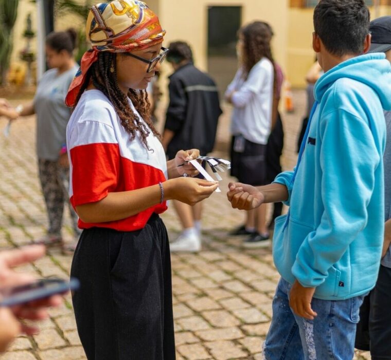 Em um dos momentos mais esperados, os alunos também participaram de uma atividade prática, na qual puderam experimentar materiais e técnicas artísticas, transformando suas percepções em criação. O exercício coletivo reforçou a importância do gesto criativo e da liberdade de expressão como caminhos de aprendizado e autoconhecimento.