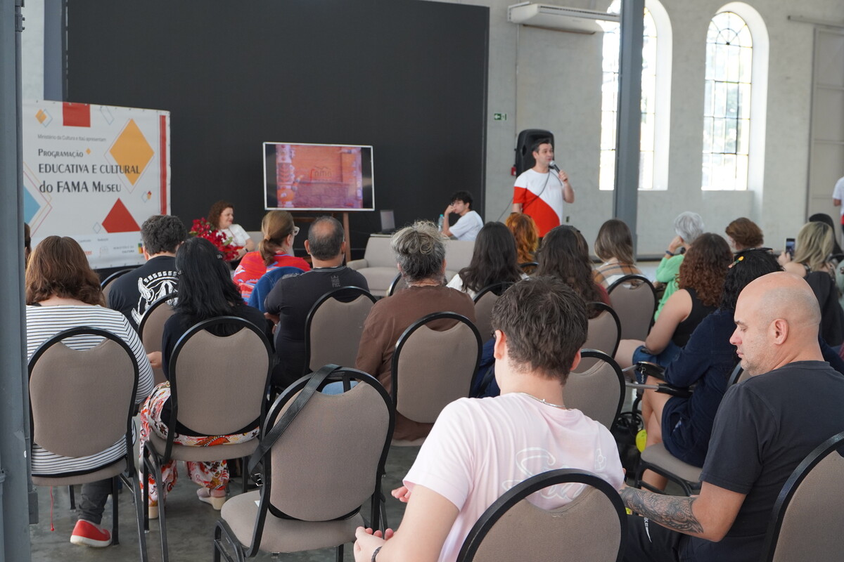 A atividade foi conduzida pelo Prof. Dr. Emerson Ribeiro Castilho, diretor do Programa Educativo do Museu FAMA, e mediada pelo Prof. Eduardo Martins e Prof. Thiago Raymundo, ampliando as trocas entre artista e público. Realizada em espaço acessível e com a presença de intérpretes de Libras, reafirmou o compromisso do Museu FAMA com a inclusão e a diversidade.