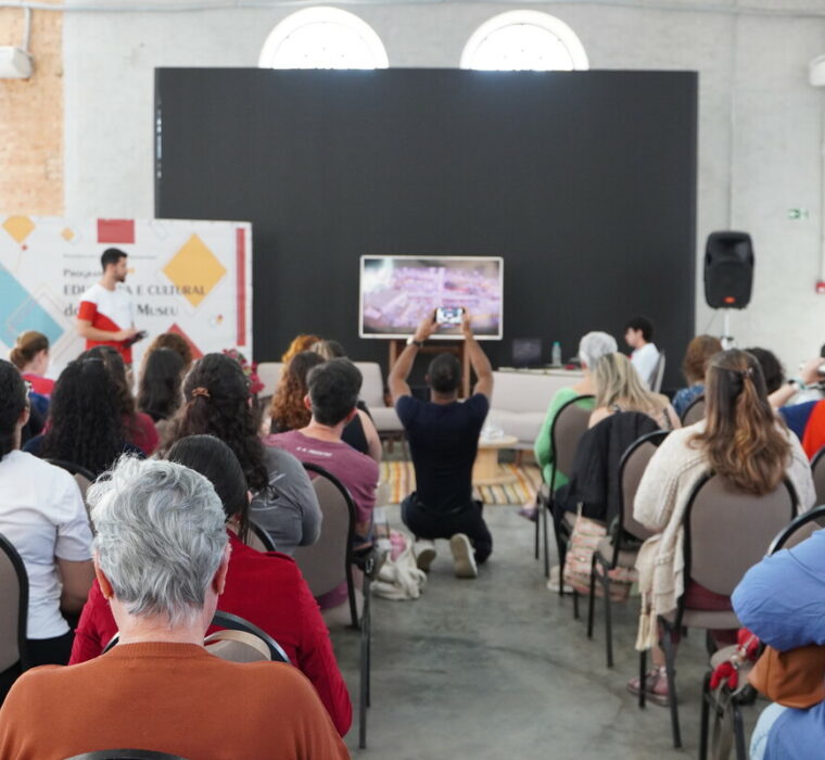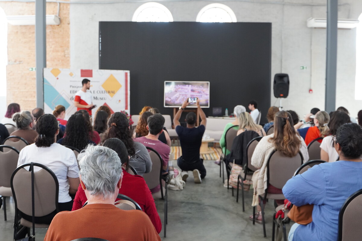 Com uma trajetória marcada pela atuação em diferentes níveis de ensino — da educação infantil àpós-graduação —, Sonia compartilhou suas experiências como docente, coordenadora e pesquisadora. Sua fala destacou como a prática artística, em especial a aquarela, pode se tornar uma ponte sensível entre os processos de aprendizagem e a vivência museológica, criando novas formas de pertencimento e de encontro com a arte. O encontro também contribuiu para valorizar expressões da cultura brasileira, evidenciando tradições, histórias e saberes que dialogam com o presente.
