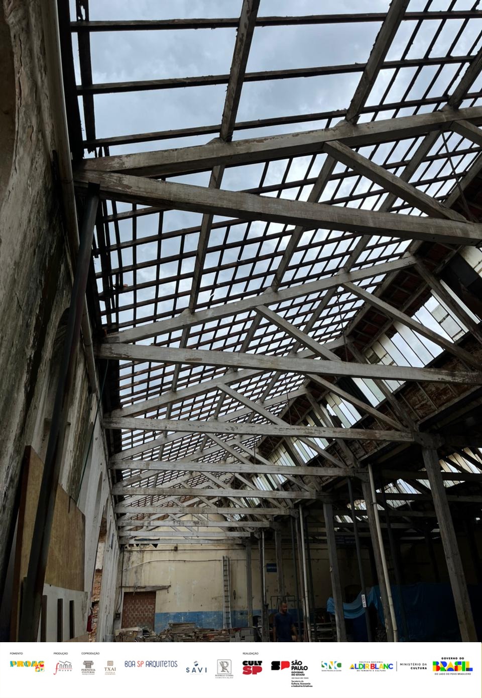 Neste momento, o foco do restauro está voltado ao telhado, elemento que, longe de ser apenas funcional, guarda técnicas construtivas avançadas, materiais importados e até “pirataria” industrial no Brasil, segundo Emerson Castilho, museólogo e responsável pelo setor educativo do Museu FAMA.